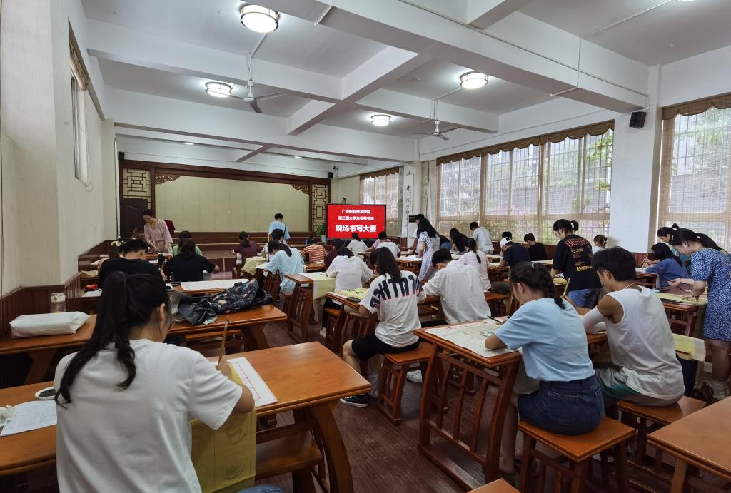 为提高中华优秀传统文化的传播力和生命力,丰富学校文化内涵,推进以文化为导向的高职书法教育实践,着力培养学生识好汉字,写好汉字,用好汉字,品好汉字的“四好”能力,检验学生汉字书写技巧和书法创作水平,提高学生对书法艺术的认知、欣赏能力。6月23日下午,广安职业技术学院第三届大学生毛笔书法现场书写大赛决赛在德馨国学馆举行。