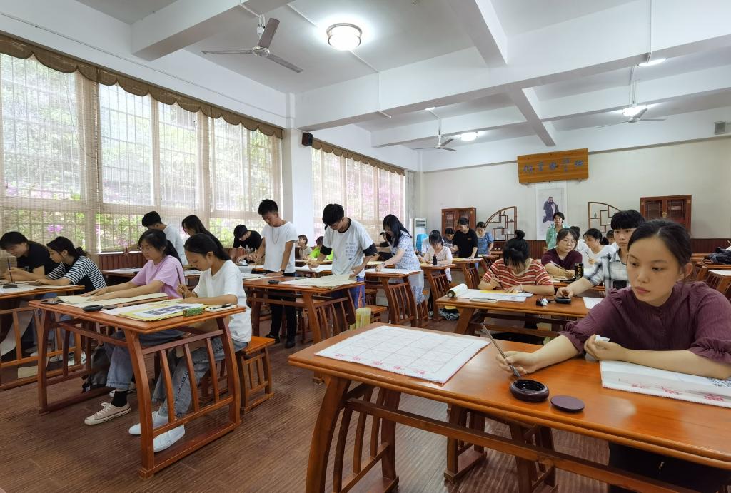 毛笔书法现场书写大赛至今已成功举办三届,该活动充分展现了我校大学生弘扬传统的文化自觉,在深化“一核三维五元”文化育人模式理论的基础上,学校坚持以培养学生文化素养为目标,通过文化导向的书法教育,将规矩、内修、审美、养性、怡情融为一体,引导学生端正写字,踏实做人。