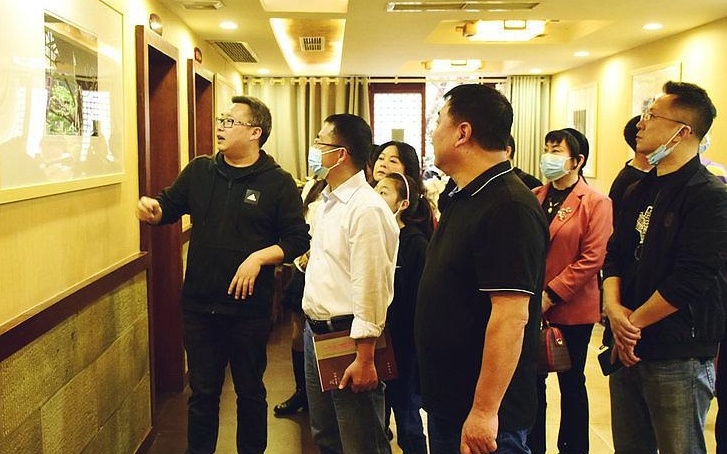 开班仪式结束后,与会嘉宾及学员在杨春光老师的引导下参观了在“茴味长乐”陈列的版画作品展。