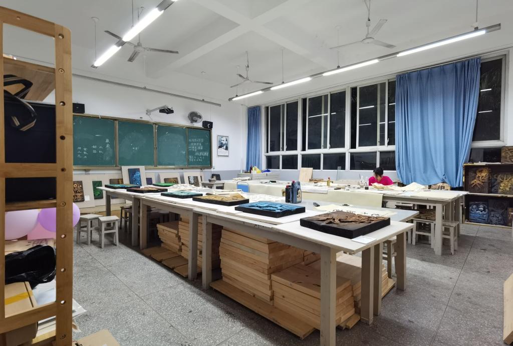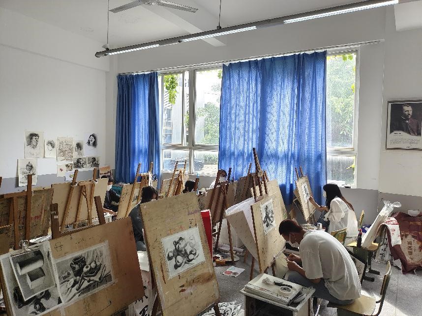 老师们充分利用“超星学习通”、腾讯会议、班级微信群、QQ群等渠道,通过示范演示、布置任务(作业)、网上答疑等方式及时开展网上教学及指导,部分艺术学子课余时间来到素描实训室、中国画工作室、书刻工作室等实践教学场地,遵守戴好口罩并保持安全距离等防疫要求,进行专业实践,真正实现了艺术创作和专业学习“两不误”,文化知识和艺术技能“共提升”,彰显了学院的专业特色,营造了良好的学习氛围。